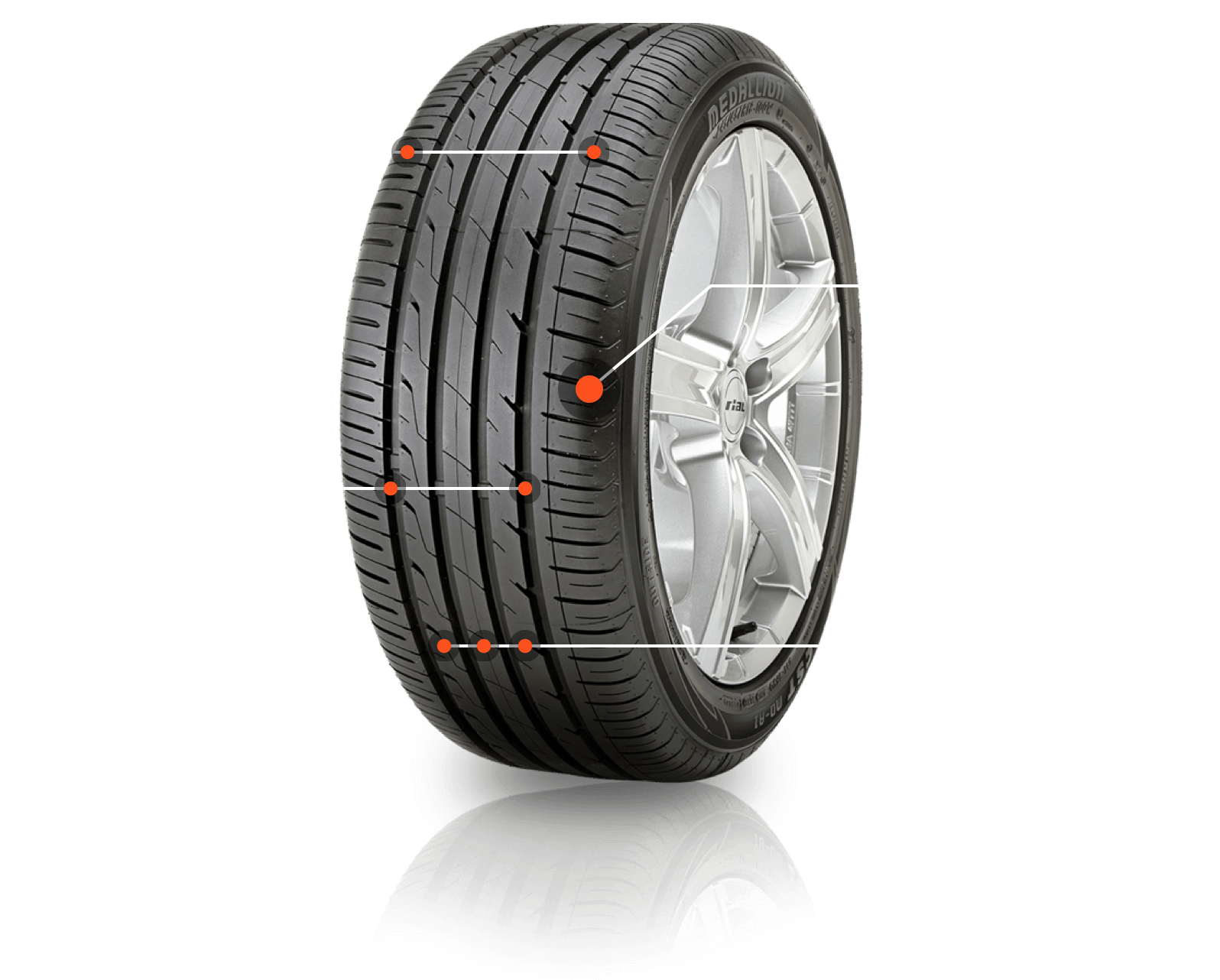 Medallion to doskonała opona o wysokich osiągach, spełniająca najwyższe wymagania nowoczesnych pojazdów klasy premium. Cztery duże podłużne rowki na bieżniku umożliwiają płynne toczenie opony, co powoduje bardzo niski poziom hałasu wewnątrz pojazdu. Nowoczesna asymetryczna konstrukcja bieżnika zapewnia doskonałe właściwości jezdne, które idealnie współgrają z samochodami osobowymi o wysokich osiągach. Dzięki zastosowaniu silikatu w mieszance bieżnika można osiągnąć dobre parametry hamowania na mokrej nawierzchni i zadowalający opór toczenia.